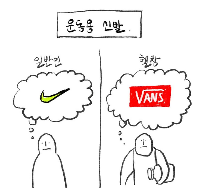 여러분들은 어떤 SNS를 즐겨 하시나요? 남들 한다는 거 이것저것 해보고는 있지만 저는 아직도 트위터와 틱톡은 너무 어렵습니다. 대신 페이스북을 자주 둘러봅니다. 네... 요즘 누가 페북 하냐고는 하지만 아직 제가 한다구요. 유행이 돌고 돌고 돌아서 폐기되기 직전에야 도착하는 곳이 페이스북이라는 건 알지만 아직은 저한테 가장 편안한 SNS가 페이스북이기도 합니다.그날도 평소처럼 페이스북 피드를 슥슥 내리고 있었는데, ‘일반인과 헬창 시각 차이’ 짤을 발견했습니다. 여러 버전이 있었지만 그중에서 가장 인상 깊었던 건 신발과 관련된 내용이었죠.
