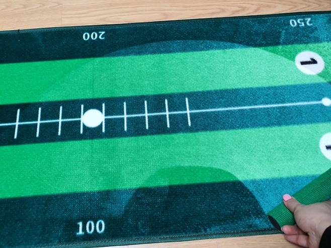 퍼팅 후 매트에 볼이 지나간 궤적이 그대로 남아