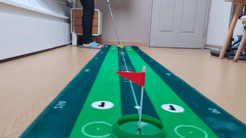 " 휴대가 간편하고 공간 활용도가 좋아서 집에서 연습하기 편해요~ 퍼팅 후 볼 궤적이 매트에 표시되어 스트로크 직진 여부까지 확인 할 수 있어서 일관성을 익히기 좋습니다. "