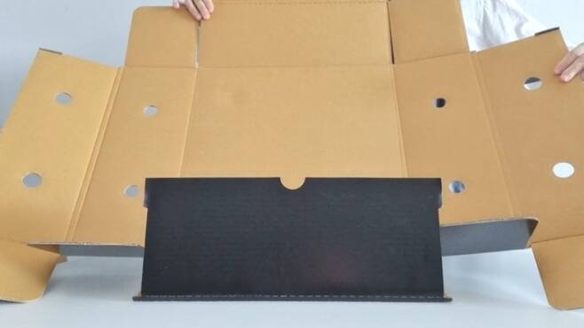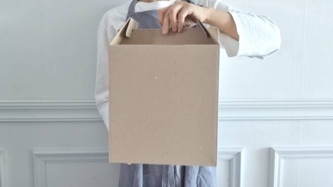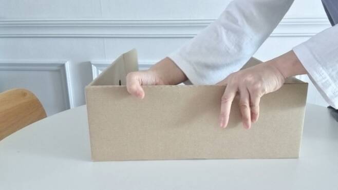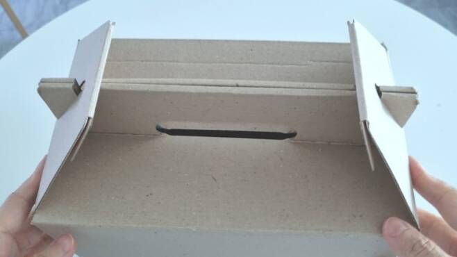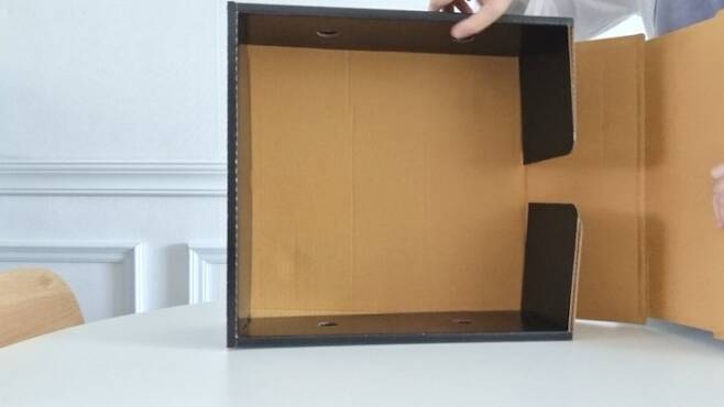 뜯은 상자를 뒤집은 다음. 글루나 양면테이프를 사용해 붙여줍니다.