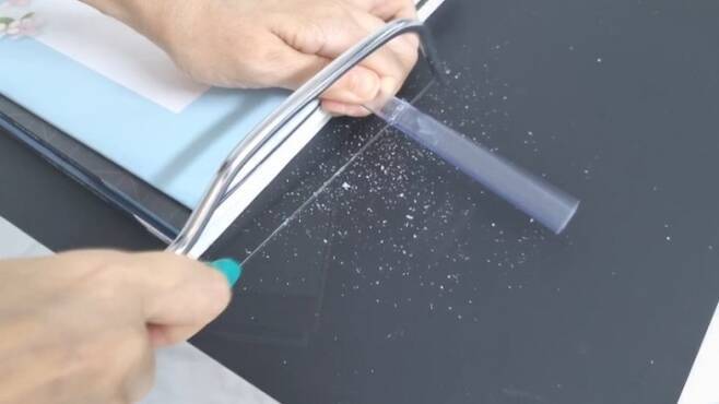 쫄대를 줄톱으로 잘라줍니다 (가위, 칼X) 큰 힘들이지 않고도 쉽게 잘 잘라져요. (쫄대 하나로 3개 만들 수 있어요)