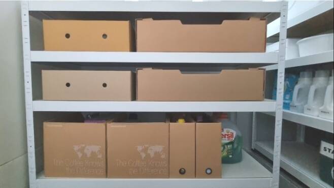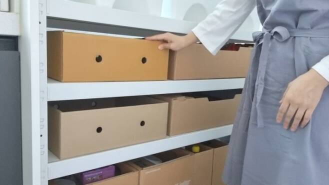 보관이 필요한 자잘한 제품 상자들을 담아두니, 작은 제품 상자들을 한 곳에 보관할 수 있어 찾기도 쉽고, 깔끔하기 보관할 수 있어 좋아요.