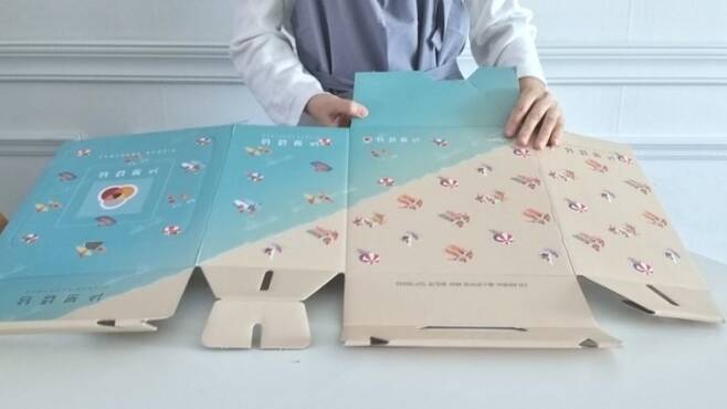 접착제가 있는 부분은 칼을 넣어 깔끔하게 떼어내요. 그냥 뜯어내려니 상자가 구겨지고 자칫하면 손이 베이겠더라고요.