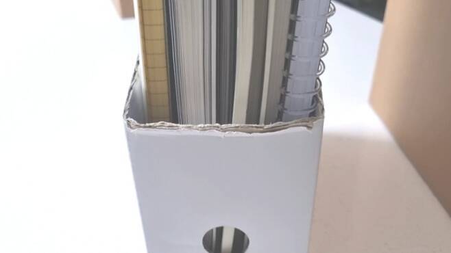 98% 만족스럽지만 2% 아쉬운 이 파일 박스의 유일한 단점은 바로 이것!종이가 너덜너덜😂 아무래도 종이이다 보니 책을 넣었다뺐다 하면서 앞부분이 쓸려서 많이 해진다는 거에요.