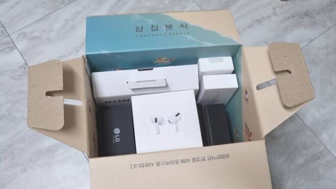 떡볶이가 담겨있던 종이상자. 튼튼하고 밑이 넓어서 좋더라고요.
