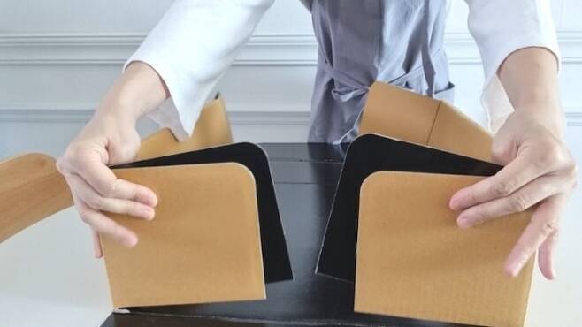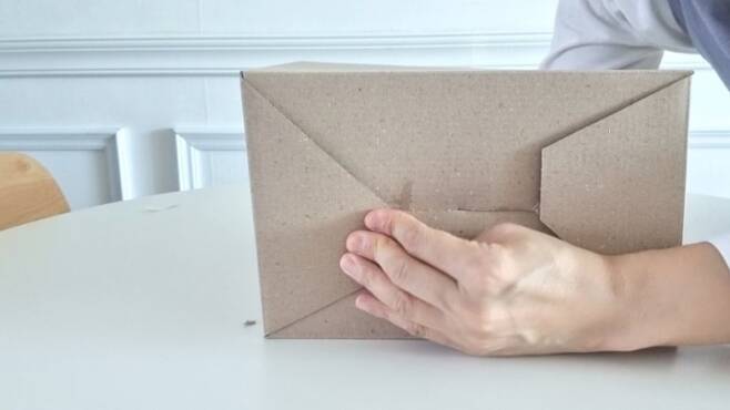 뜯은 상자를 뒤집은 다음. 글루나 양면테이프를 사용해 붙여줍니다.