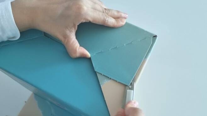 접착제가 있는 부분은 칼을 넣어 깔끔하게 떼어내요. 그냥 뜯어내려니 상자가 구겨지고 자칫하면 손이 베이겠더라고요.