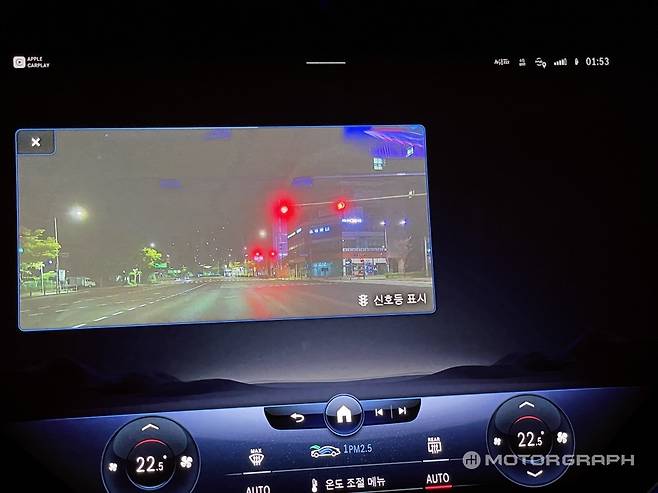 신호대기 중에는 전방 카메라가 교차로 상황과 신호등을 비춰준다. 정지선에 맞춰 정차할 경우 선바이저나 차량 지붕에 신호등이 가려져 목을 앞으로 쭉 빼야 하는 경우가 있었는데, EQS는 운전자가 별다른 조작을 하지 않아도 교차로에 서 있음을 인지하고 앞의 상황을 비춰준다.