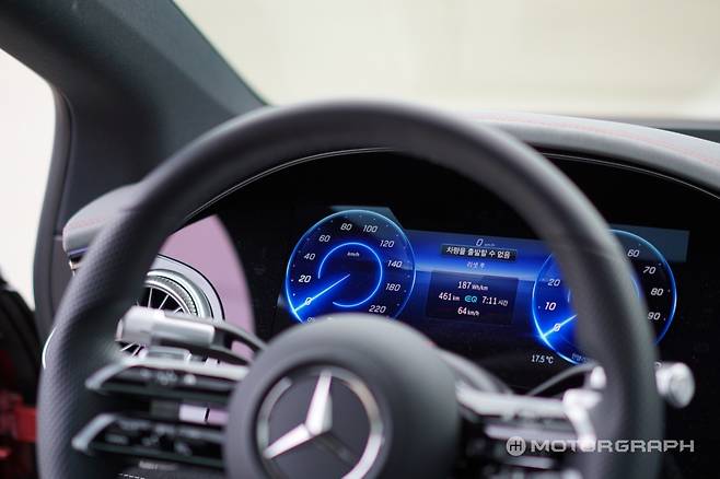 디지털 클러스터는 운전하면 할수록 불만족스럽다. 독일에서는 워낙 짧게 탓던 탓에 느끼지 못했는데, 계기판이 과하게 누워있어 운전 중 보기에 불편하고 햇빛이 비치면 선명하게 보이지 않는다. 벤츠도 이를 알고 있는지, 그간 적용하지 않던 계기판 상단 햇빛 가리개도 만들어놨다.