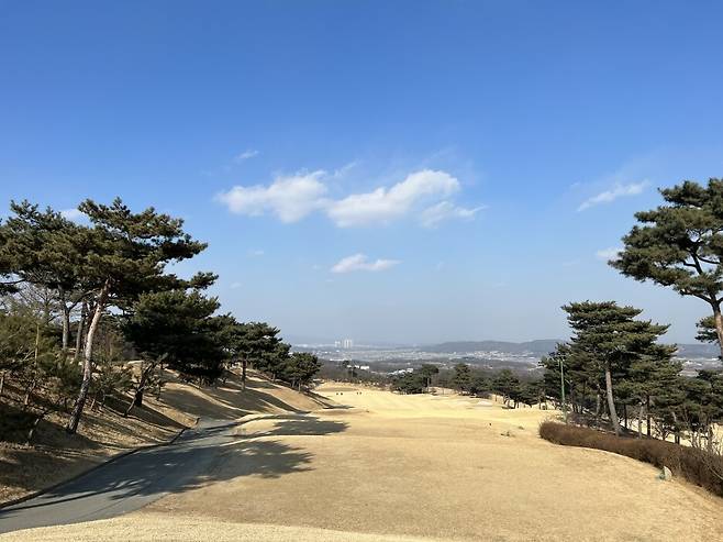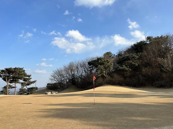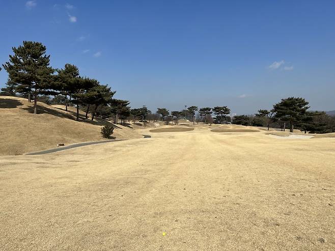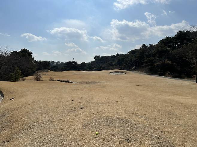 페어웨이는 조선 잔디이며 잔디 길이는 여느 골프장과 비슷한 짧은 길이로 관리되었습니다. 약간 건조한 상태이며, 디봇은 얇고 푸석하게 떼어집니다. 겨울이라 배토작업은 진행되지 않는지 볼 자국이 많이 보이는 편입니다. 디봇은 많이 파지는 편은 아니었습니다.