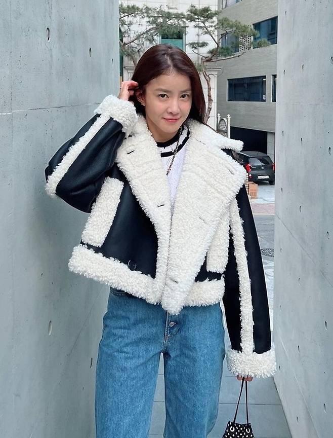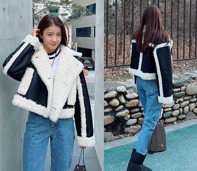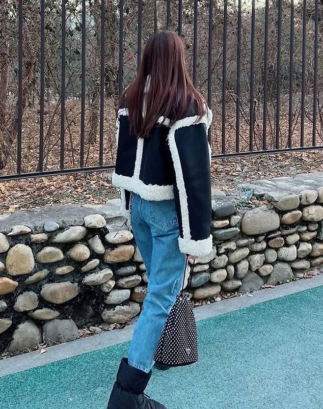 배우 이시영이 스타일리시한 크롭트 무통 재킷으로 눈부신 뒤태를 자랑했다.