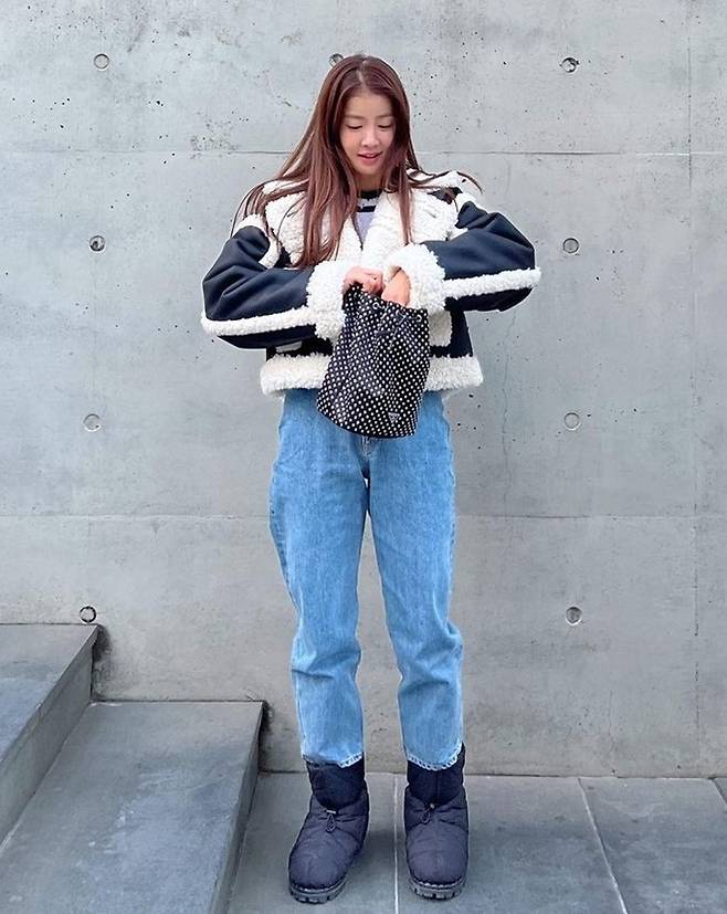 공개된 사진 속 이시영은 양털 트리밍이 눈에 띄는 짧은 기장의 무통 재킷과 청바지를 매치해 힙한 윈터룩을 완성했다.