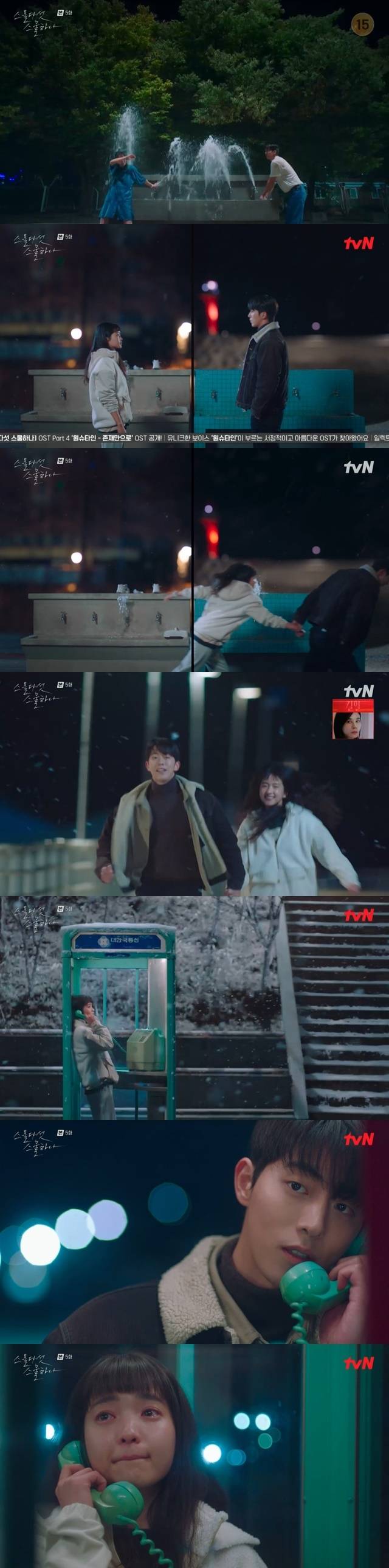 뒤이어 백이진은 나희도에게 “보고 싶었어. 그런데 봤어. 네가 보여줘서. 그래서 오늘은 웃었어. 풀하우스 14권은 나왔어? 15권 나오기 전에 나타날게. 기다려. 희도야”라고 음성 메시지를 남겼고, 나희도는 음성 메시지를 듣고 눈물을 흘리는 모습으로 애틋함이 폭발했다. 멀리서도 서로에게 위로가 되는 백이진과 나희도의 로맨스가 펼쳐지며 두 사람의 재회에 기대감을 모았다. (사진=tvN ‘스물다섯 스물하나’ 캡처)