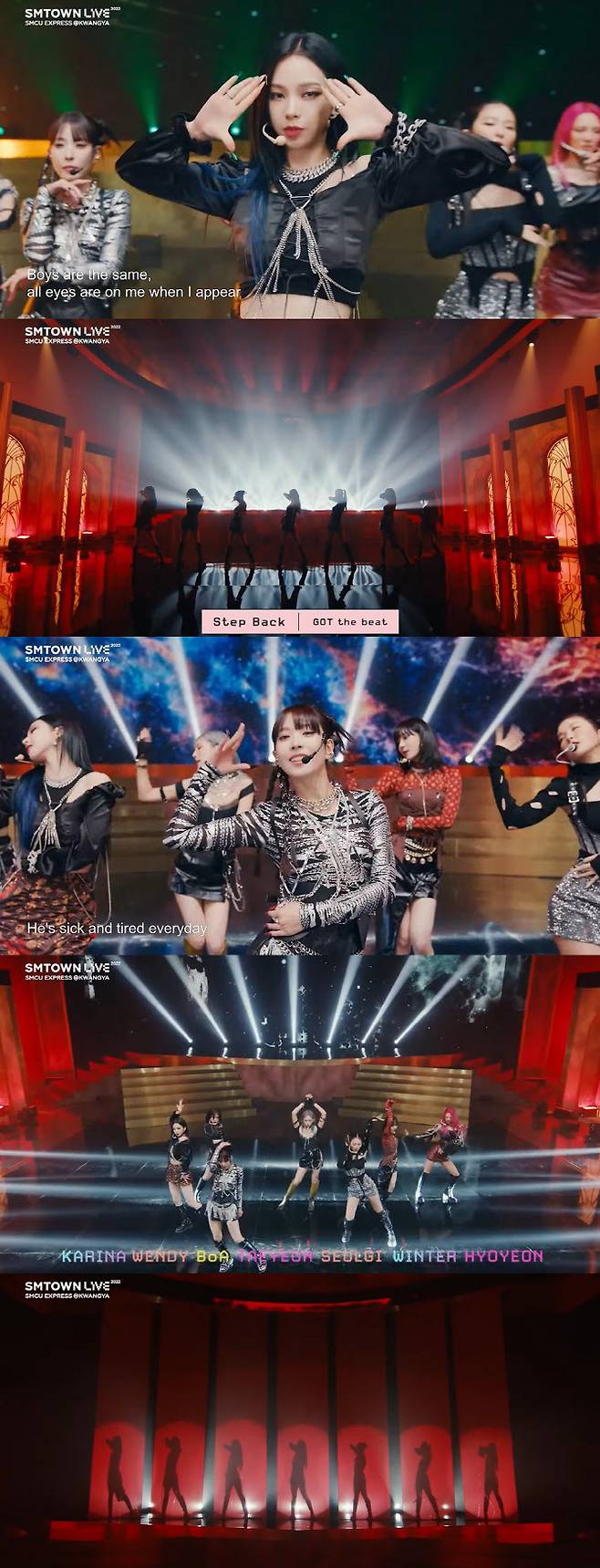 카리나가 곡의 포문을 연 가운데 보아, 슬기, 태연, 웬디, 윈터, 효연이 차례로 등장해 각기 다른 아우라를 내뿜었다. 멤버 중 데뷔가 가장 빠른 보아는 걸그룹 활동 경험이 없어 함께 퍼포먼스를 펼치는 모습 그 자체가 볼거리였다.