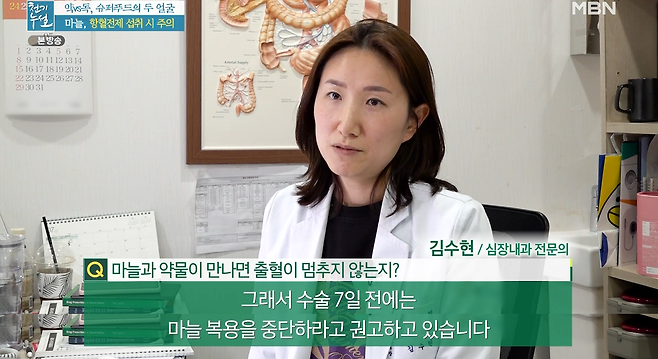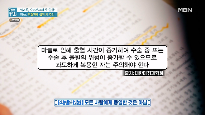 실제 대한마취과학회 자료에서는 마늘로 인한 출혈 증가로 수술이 위험해질 수도 있다고 명시되어 있죠