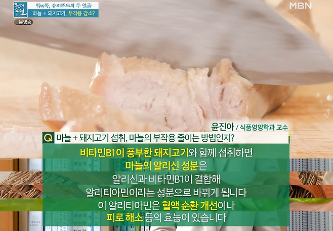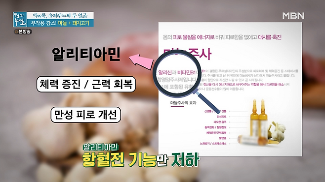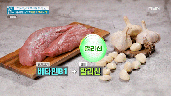 마늘의 알리신 성분 + 돼지고기의 비타민 B1은 결합이 되어