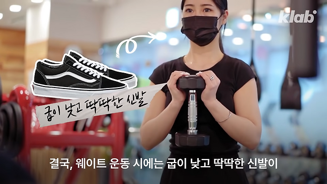 즉 웨이트 운동 시에는 굽이 낮고 딱딱한 신발,