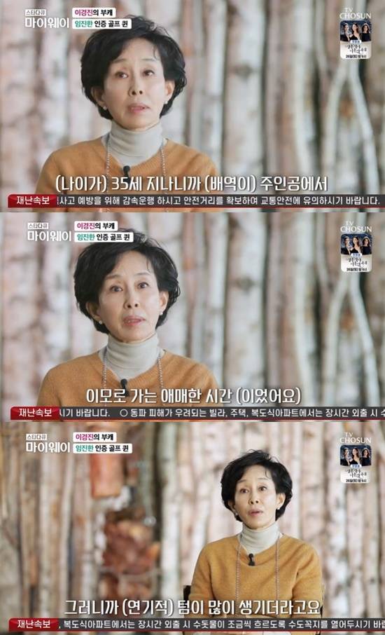 이날 이경진은 30대 중반 겪었던 연기 슬럼프를 고백하며 "나이가 35세가 넘어가니 이모 역할이 많이 들어오고, 그런 과도기가 있었다. 그 때 연기적 텀이 많이 생기더라. 골프를 하면서 슬럼프를 극복했다"고 말했다.