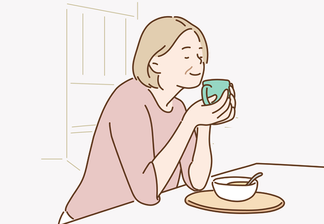 "카페에서 공부하는 할머니"