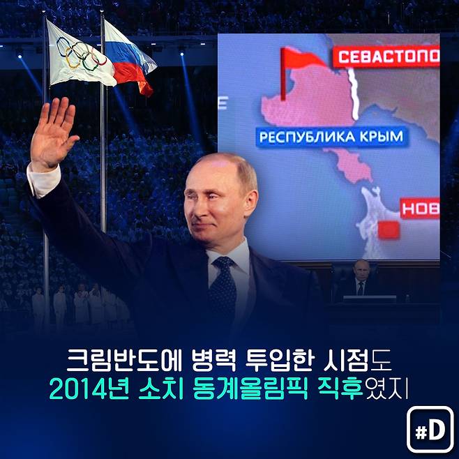 러시아가 조지아를 침공하거나 크림반도를 병합할 때 올림픽이란 지구촌 이벤트를 활용했다는 지적도 있어 관심을 끌고 있습니다.