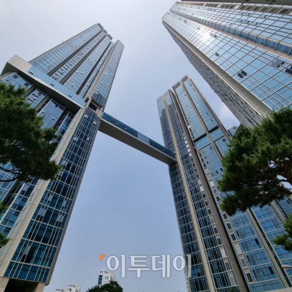단지를 보자마자 가장 먼저 눈길을 끄는 건 끝없는 높이와 더불어 빼어난 디자인이었다. 흐린 날씨에도 불구하고 단지 외벽만큼은 반짝반짝 빛이 났다. 크리스탈을 모티브로 한 ‘커튼월 디자인’을 적용해 전면 유리가 단지 외벽을 둘러싸고 있어서다.