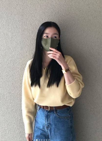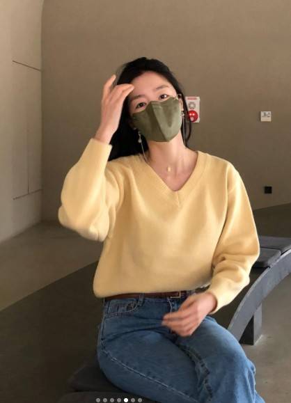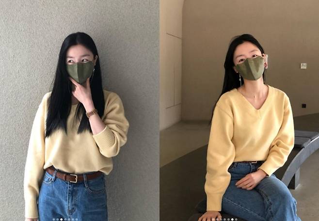 사진에는 한선화가 옐로우 컬러 니트에 청바지를 입고 포즈를 취하고 있다. 내츄럴한 패션에도 마스크를 뚫고 나오는 한선화의 청순미와 한층 물오른 여신 미모가 눈길을 사로잡는다.