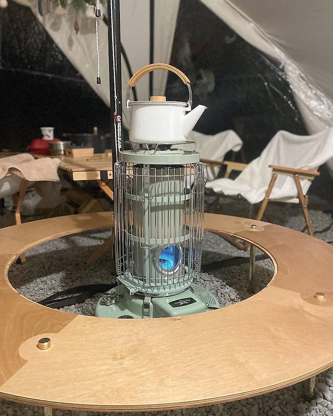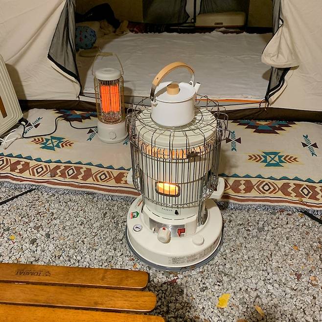 저는 난로를 여러 종류로 가지고 있는데요. 이 파세코 난로는 등유 난로인데, 겨울마다 거의 난로 대란일만큼 캠퍼들 사이에서 유명한 제품이에요. 매번 품절로 구입하기 힘들고 가격대도 비싸지만 그만큼 따뜻하고 그 값을 하는 제품이라 계속적으로 캠핑을 하는 분들이라면 추천해요. 겨울에 난로 하나만 켜놔도 정말 따뜻하거든요~ 대신 건조할 수가 있기 때문에 가습기는 필수구요!
