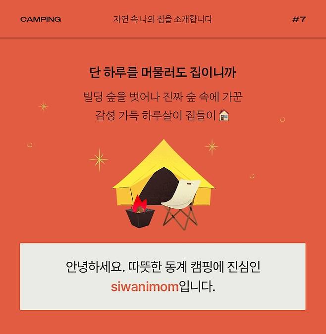 그러다 만난 캠핑이 지금의 저에게 유일한 휴식이고 힐링이 되었어요. 캠핑을 몰랐다면 코로나 시기에 아마 큰 스트레스로 집에서 힘들게 보냈을 텐데 말이죠. 코로나로 인해 많은 분들이 캠핑을 시작하시게 된 것 같은데요. 저도 캠핑의 매력을 많은 분들에게 소개해드리고, 캠핑도 또 다른 야외의 집으로써 숨 쉴 수 있는 공간이 된다는 걸 알려드리고 싶어요. 집과 마찬가지로 정말 예쁘고 감성적으로 꾸미며 즐길 수 있거든요.