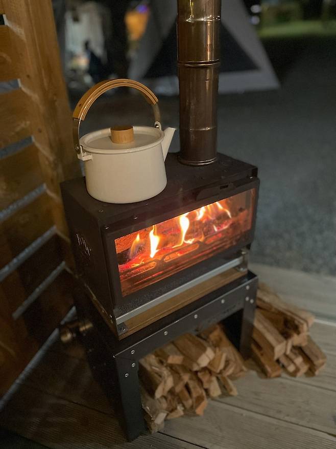 주로 쉘터에 두고 사용하는 용도로 난로 위에 맛난 밤이나 피자를 데우거나, 물을 끓이는 용도로 쓰면서 실내 공간을 따뜻하게 만들어주고 있어요.