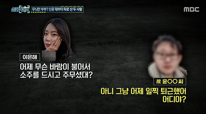 21일 방송된 MBC '실화탐사대'에서는 이은해 사건을 다룬 '잔혹한 그녀의 계획' 편을 방송했다. 이날 방송에서 윤씨의 유족은 이은해와의 결혼이 처음부터 이상했고, 결혼 후 신혼집 한번 가보지 못했다고 말했다.