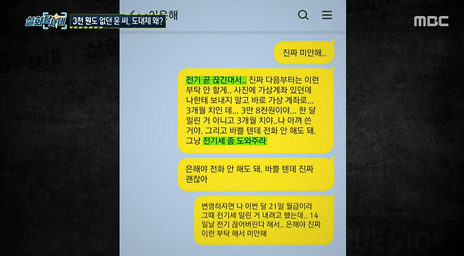 이은해의 씀씀이를 충당하느라 빚더미에 앉은 윤씨는 이은해와 통화에서 "우리 그냥 헤어질까. 어제 나 때린 거나 그런 거 때문에 그러는 건 아니야. 빚이 너무 많아. 빚이 너무 많아. 회사 빚도 넘치고"라며 흐느꼈다.