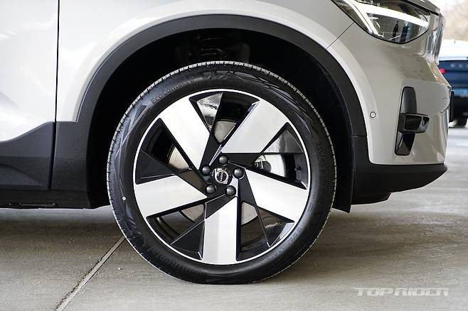 C40 리차지는 전장 4440mm, 전폭 1875mm, 전고 1595mm, 휠베이스 2702mm의 차체를 갖는다. XC40 리차지 대비 전장 +15mm, 전고 -40mm, 그리고 전폭과 휠베이스는 동일하다. 20인치 대구경 휠이 기본이며, 사계절 타이어 적용으로 윈터타이어 부담을 덜어준다.