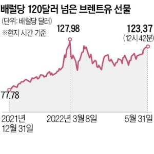 유럽의 대러 제재 합의안이 발표되자 국제 유가는 일제히 상승했다. 북해산 브렌트유 선물은 31일 장중 배럴당 123.58달러까지 올랐다. 브렌트유가 120달러 선을 넘은 것은 우크라이나 전쟁 발발 후 에너지 가격이 급등했던 3월 이후 두 달 만이다. 서부텍사스원유(WTI) 선물 가격도 배럴당 119달러를 웃돌았다. 오일프라이스닷컴은 유럽이 러시아산 석유 수입을 전면 금지하면 국제 유가가 배럴당 150달러 선에 근접했던 2008년 수준까지 뛰면서 스태그플레이션(경기침체 속 물가 상승)을 초래할 수 있다고 경고했다.