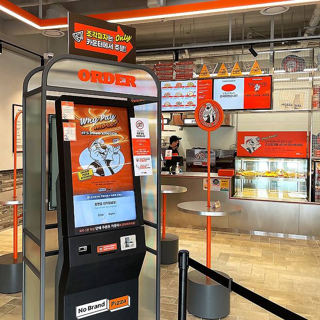 매장 오픈 시간에 맞춰 도착했는데 벌써 앞에 손님이 3팀이나 있어서 놀랐어요.. 도착하자마자 자리를 잡고 귀여운 인테리어 구경하기 바빴네요 ㅎㅎ 조각피자를 제외하고는 폰 부스같이 생긴 귀염 뽀짝 키오스크로 주문해야 했답니다!