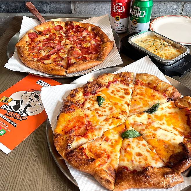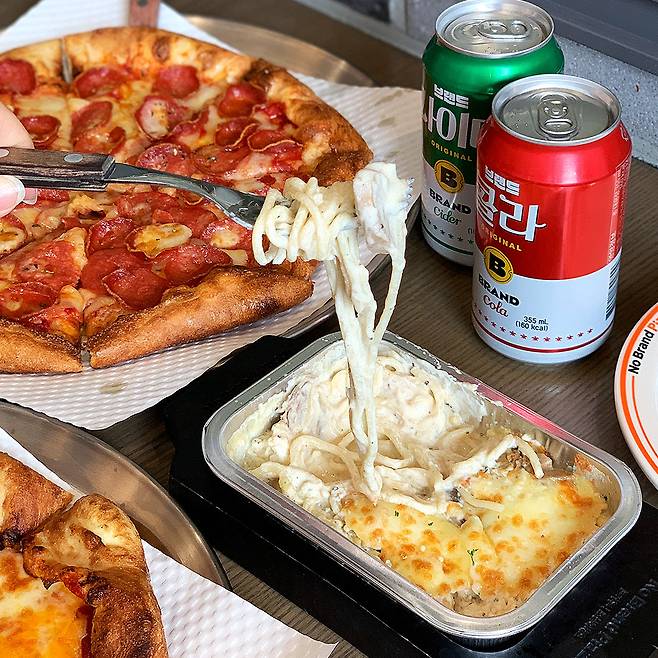 뭘 먹어야 잘 먹었다고 소문이 날 지 한참 고민하다가 피자는 '투머치 페퍼로니' & '올어바웃 치즈', 파스타는 '스노잉 트러플머쉬룸'으로 PICK! 메뉴 선정하기가 너무 힘들어서 베스트 혹은 노브랜드 픽 메뉴로 골랐어요 ㅋㅋㅋ 거기에 빠질 수 없는 콜라와 사이다도 하나씩 주문~