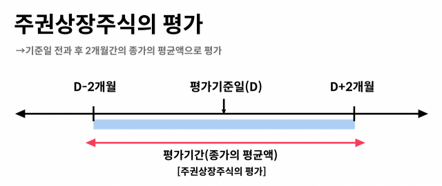 세무사 : 아~ 2,000만원 기준은 맞는 얘기인데, 종가 기준은 틀린 얘기야. 주식이라는 것이 항상 등락이 있게 마련이라 단기 급등락에 따라 평가가액이 왜곡이 있을 수 있기 때문에 상속이나 증여시 상장주식은 일정기간, 즉 평가기준일 전과 후 2개월간의 종가의 평균액으로 평가하게끔 되어 있어. 결국 지금 상장주식을 증여한다 하더라도 실제 평가금액이 어떻게 될지는 2개월이 지나야 알 수 있다는 얘기나 마찬가지지.