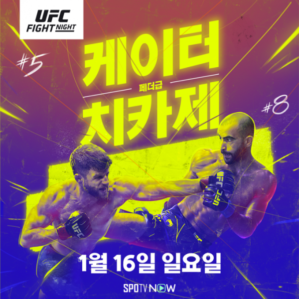 페더급 랭킹 진입을 바라보고 있는 최승우 예측대로 케이터가 승리를 거머쥘 수 있을까. 오는 16일(일) 2022년 옥타곤의 포문을 열 'UFC Fight Night: 케이터 vs 치카제'의 메인카드 경기는 오전 9시부터 온라인 스포츠 플랫폼 스포티비 나우(SPOTV NOW)와 프리미엄 스포츠 채널 스포티비 온(SPOTV ON)에서 독점 생중계로 만나 볼 수 있다.