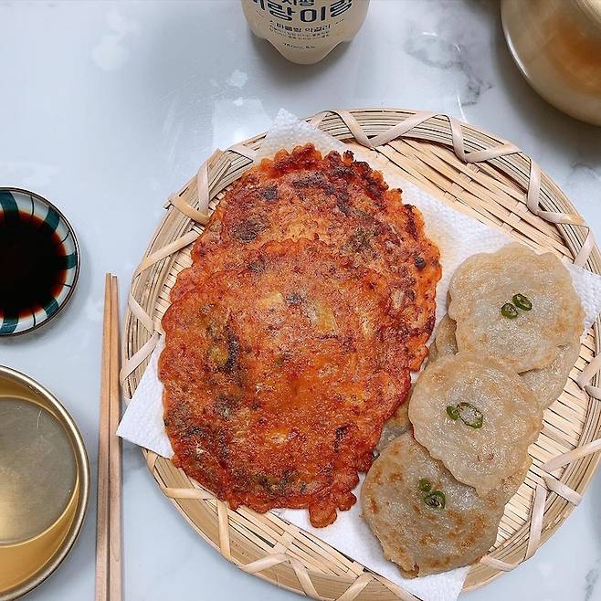 전 부쳐먹을 때는 대나무 채반에다 담으면 찰떡! 이럴 때 쓰려고 담양 죽녹원 갔을 때 기념품으로 사왔어요 ㅋㅋㅋ (tmi)