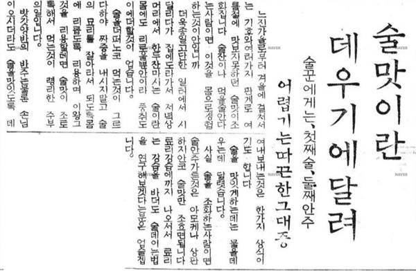 | ▲ 술맛이란 데우기에 달려 1937년 11월9일 조선일보 |