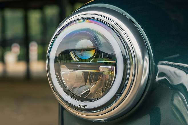 전면 그릴은 레스토모드카의 성능에 맞게끔 새로운 디자인을 적용했다. 오스틴 힐리의 시그니처 범퍼는 단순한 디자인 구현을 위해 제외됐고, 전면 밸런스 길이를 연장해 섀시 부분을 감췄다. 새롭게 장착한 LED 헤드램프는 현대적인 느낌을 자아낸다.