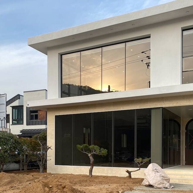 건축에서 끝마침을 찍는 정점! 바로 조경이라 할 수 있겠죠? 건물을 아름답게 돋보이게 해주는 조경은 평소 꽃과 나무를 좋아하시는 저희 아버지께서 직접 진행하셨어요. 어느 날 현장 앞으로 거대한 소나무가 실려와 입이 떡 벌어졌던 기억이 아직도 생생하네요. 마치 저희 가족의 보금자리를 지켜주는 아버지와 같은 든든한 소나무가 한그루 심어지고 나니 비로소 모든 공사가 무사히 마무리되었다는 안도감(?)과 성취감으로 그날 밤은 설레는 마음에 잠을 설쳤던 것 같아요.