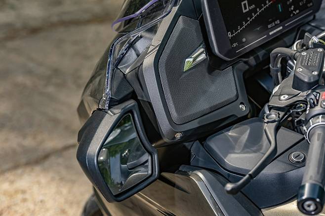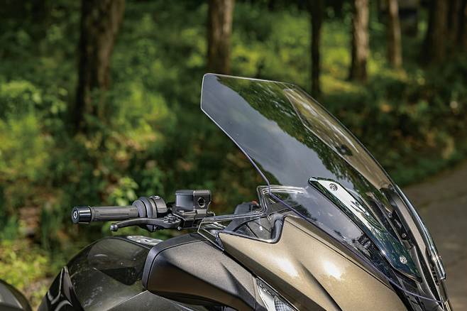 주행풍을 걸러주는 전동 윈드 스크린은 기존 모델과 동일한 수준으로 높이 조절이 상당하다. 가장 낮은 상태에서 최대로 높이게 되면 스크린이 기울어진 각도에 맞춰 올라오다가 끝에서는 약간 세워져 더 높이 커버한다. 180cm의 성인 남성이 순정 윈드 스크린에 가려져 공기저항을 전혀 받지 않을 수 있는 유일한 모델로 생각이 든다.