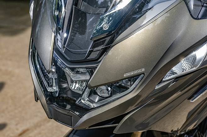 차량의 전체적인 실루엣은 크게 달라지지 않았는데 전면헤드라이트와 페어링의 디자인이 변경되었다. 특히 기존원형이었던 DRL 디자인이 납작한 V자 형태로 변경되어 더 또렷한 인상과 트렌디한 느낌을 준다. 함께 어우러진 LED 헤드라이트는 어댑티브 터닝 라이트 옵션이 적용되어 바이크가 기울어지더라도 조사각을 수평으로 유지하며 전방을 비춰준다. 꽤나 부드럽고 자연스럽게 작동하기때문에 이질감이 거의 없다. 처음 야간 주행할 때는 어댑티브 터닝 라이트 옵션이 있다는 것을 망각하고 헤드라이트의 광량이 우수해서 시인성이 좋다고 착각했을 정도다. 상향등을 켜면 DRL 상단에 있는 LED 4구까지 모두 점등된다.