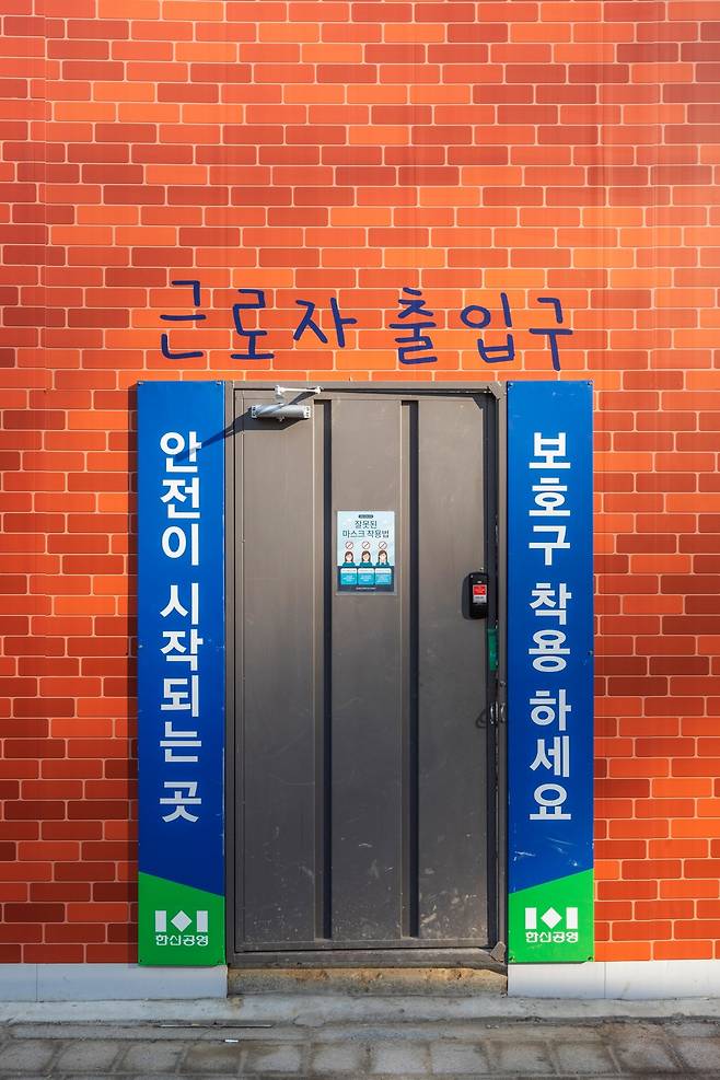 아, 덧붙이자면 곳곳에 위트있는 요소들이 숨어있다. 공사장로 들어가는 출입구에는 ‘근로자 출입구’라는 귀여운 필체의 글씨가 쓰여있는데, 노보 작가가 직접 작업한 손글씨라고.