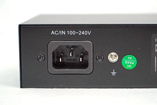 후면에는 전원 코드를 장착할 수 있는 전원부와 접지용 단자가 자리잡았다. ipTIME PoE8003은 내부 전원회로를 사용하기 때문에 별도의 전원 어댑터 없이 전원 코드만으로도 전원 사용이 가능하며, PoE 특성 상 혹시나 있을 과전압을 방지하기 위해 접지용 단자를 외부 접지선과 연결해 사용할 수 있다.