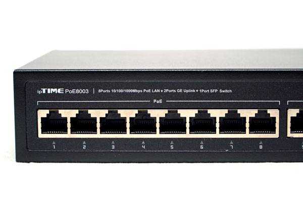 ipTIME PoE8003는 PoE 포트 8개와 업링크 전용포트 3개, 총 11개의 랜포트로 구성된 스위치 허브다. 이때 PoE 전용포트는 10/100/1000Mbps 기가비트 이더넷으로 작동하며, Full Duplex 2000Mbps로 동작해 양방향 최대 2000Mbps 속도로 데이터 송수신이 가능하다.