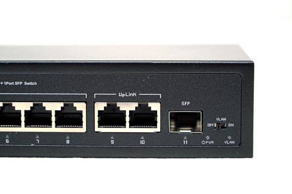 업링크 포트는 총 3개로 2개의 RJ45 포트와 1개의 SFP 포트가 탑재된다. 업링크 포트를 사용하면 기가비트급 백본망, 혹은 고용량 서버를 효과적으로 연결할 수 있으며 추가로 SFP포트를 사용할 경우 광케이블을 장착할 수 있어 100m를 초과하는 원거리에서도 일정한 데이터 속도로 연결이 가능하다.