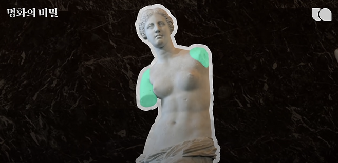 비너스의 오른팔이 몸을 사선으로 가로질러서,