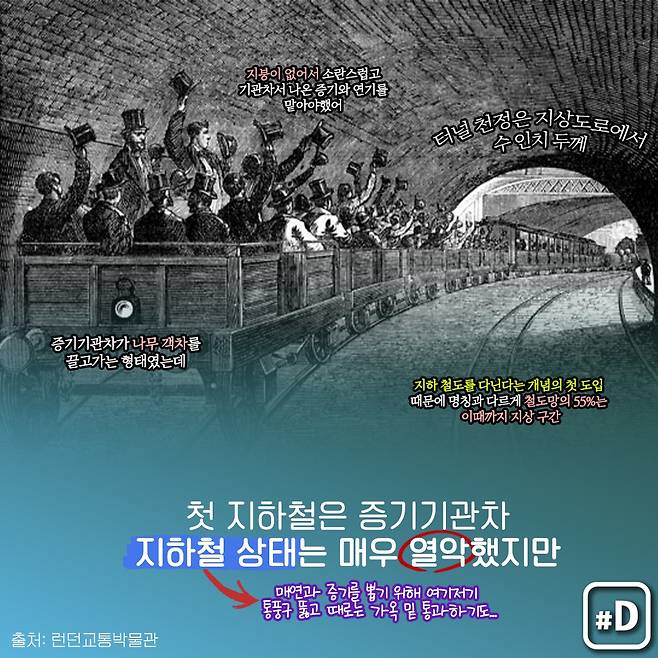 우리나라에선 1974년 지하철이 등장했으니 런던 지하철은 우리나라보다 111년 앞선 것입니다.