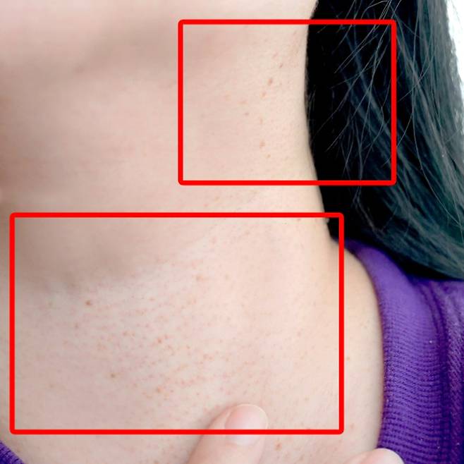 목이랑 겨드랑이 쪽이 많아서 집중적으로 발라봤다. 솔직히 매일 봐선 잘 몰랐는데 한달 좀 지나니까 효과났음. 처음엔 좀 오돌토돌하게 나온 게 부드러워졌다 정도? 그러다가 나중엔 서서히 엄청 얇아지는 게 눈에 보임.